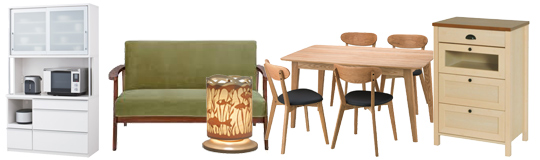 ●整理ダンス ●書庫 ●食器棚 ●シューズBOX ●サイドボード ●照明●ダイニングセット ●ソファ ●ラック |